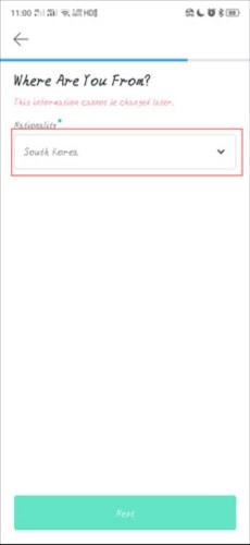 选择国家时请注意,该信息一旦选定将无法修改,可供选择的选项为:韩国、韩国以外的国家。