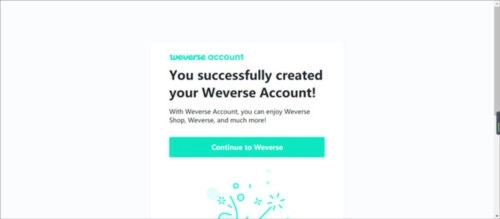 之后会跳转至一个页面,页面上会提示我们已成功创建Weverse账户,此时点击对应的按钮即可。