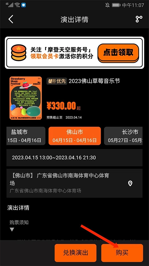进入【演出详情】界面,选择【购买】选项,