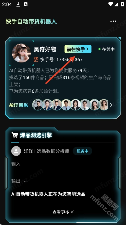 点击前往快手就能在直播间使用该AI机器人进行直播