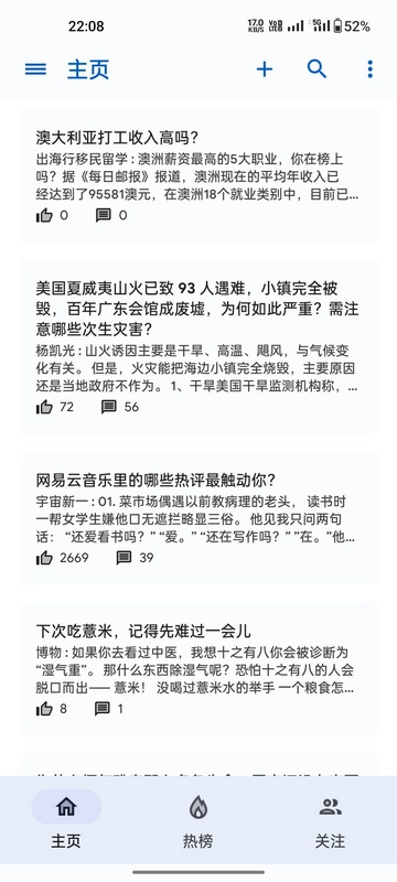 打开后,主页推荐比较热门的讨论话题