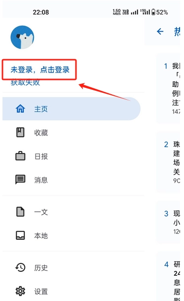 首次打开Hydrogen应用,首先看到的是简洁清爽的首页。要开始使用的话,得先完成登录操作。点击屏幕左上角的三条横线按钮,就能进入下面的界面。