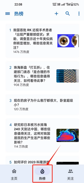 热榜一栏提供科学、数码、体育等各种热门话题