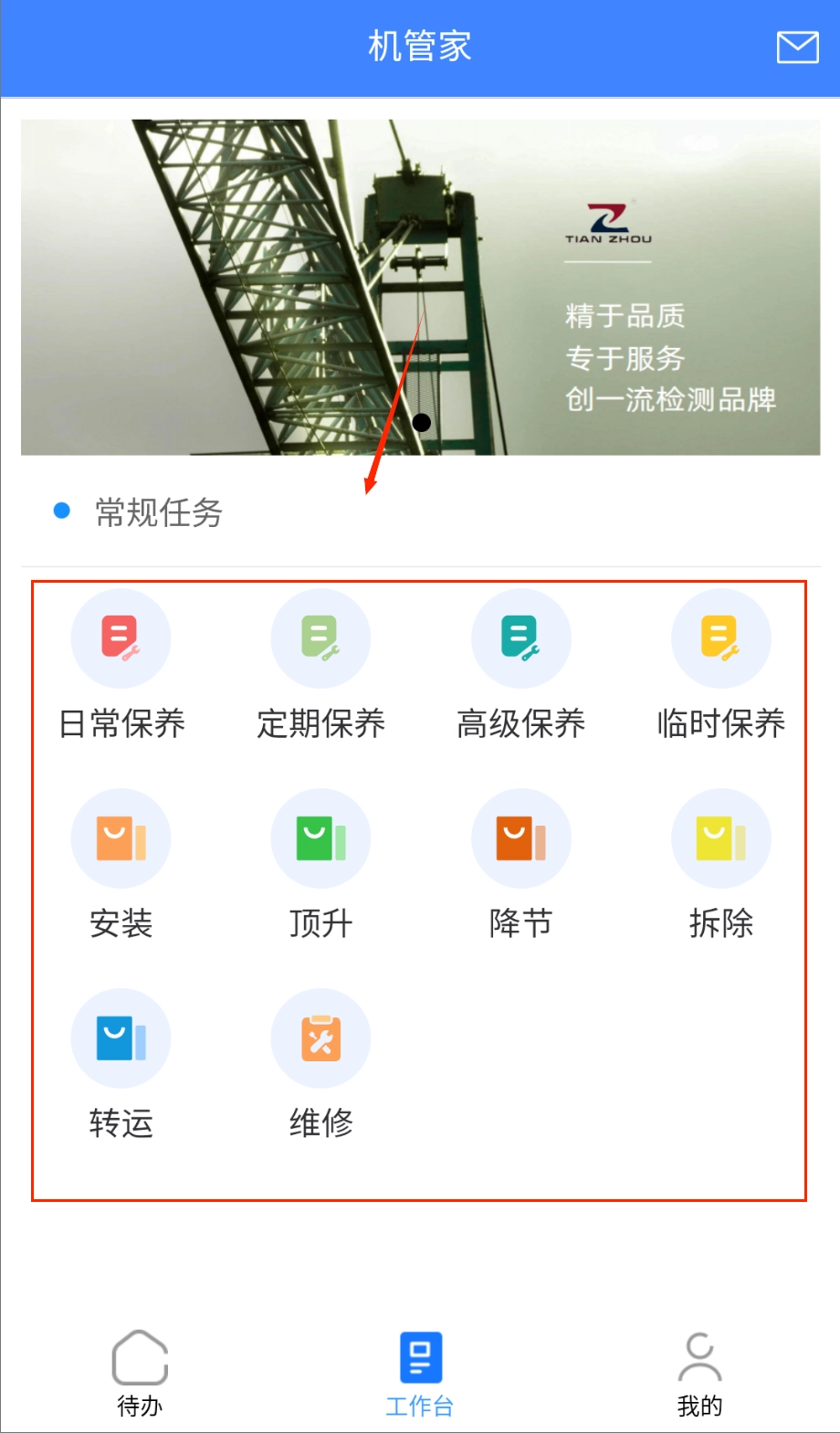 是专为设备运维管理设计的移动应用,通过数字化手段实现设备全生命周期监控与维护,用户可随时查看设备运行状态、处理待办工单、管理维保任务,有效降低运维成本并提升工作效率,其智能提醒功能和详细数据记录为设备管理提供全面保障。用户安装应用后,通过账号密码与验证码完成登录,进入主界面就能看到系统推送的最新待办工单信息,涵盖工单类型和紧急程度等内容。