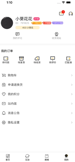 在我的界面,可以看到个人信息以及物流信息等。