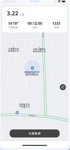 之后可以看到自己的跑路路程,下面按钮可以长按暂停