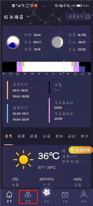 电子天气图。打开地图后,你能查看适合观星、摄影的优质地点,以及丘陵等地貌的位置。