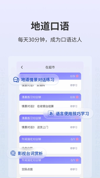 采用情景式设计理念,针对不同场景配备日语发音练习材料,助力你沉浸式体验日语思维模式,掌握日语口语表达技巧。
