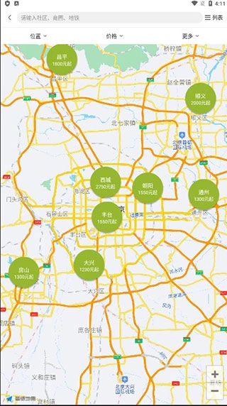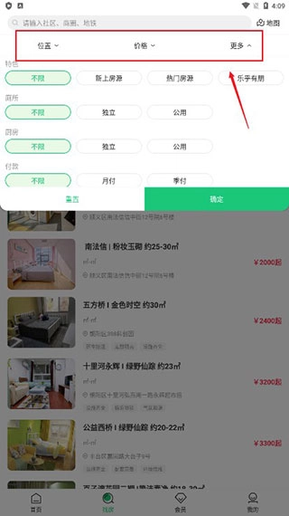 可以进行位置、价格等筛选,满足不同的租房需求;