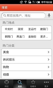 1, 附近搜索功能会自动获取您的当前位置,进而搜索周边的美食、娱乐场所、酒店、购物地点、景点等各类生活服务信息。