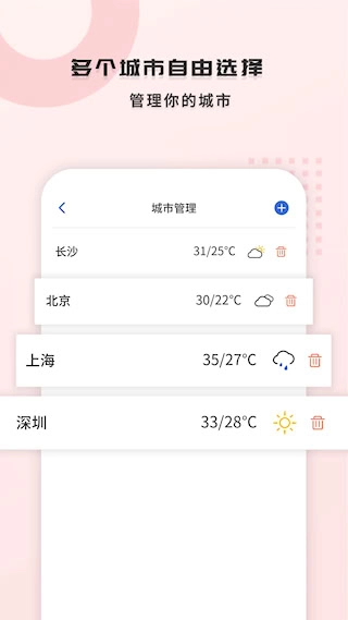 管理城市关注的操作很简单,长按对应条目就能完成删除,整个流程直观且易于上手。