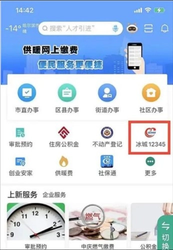 打开软件首页后,找到“冰城12345”这个选项;要是没直接看到,点一下页面下方的“更多”按钮去查找就行。