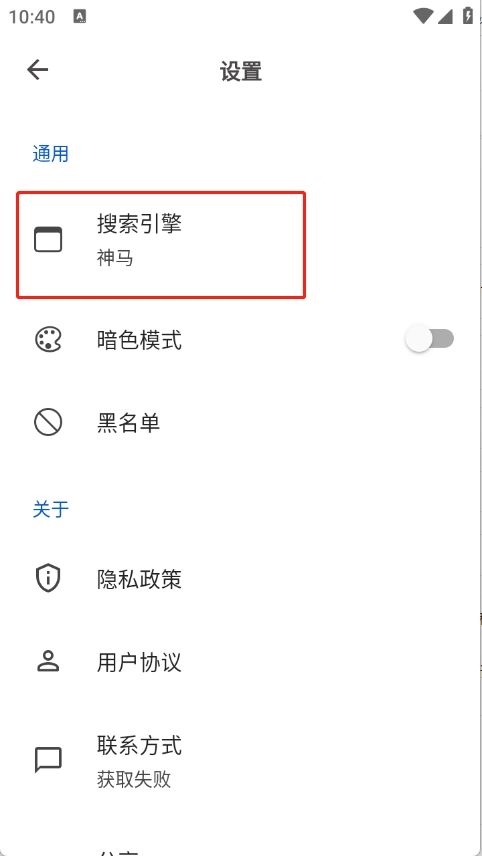 然后点击“搜索引擎”。