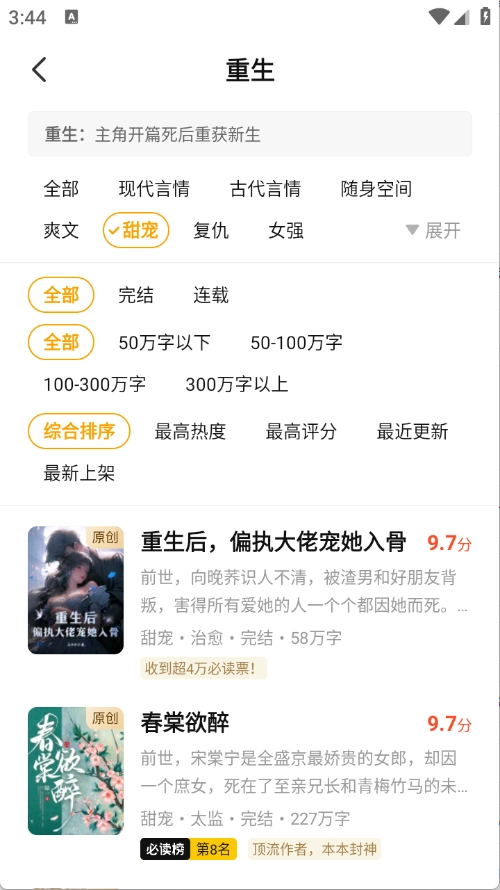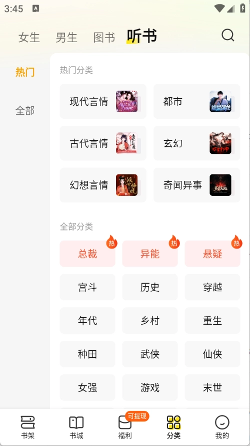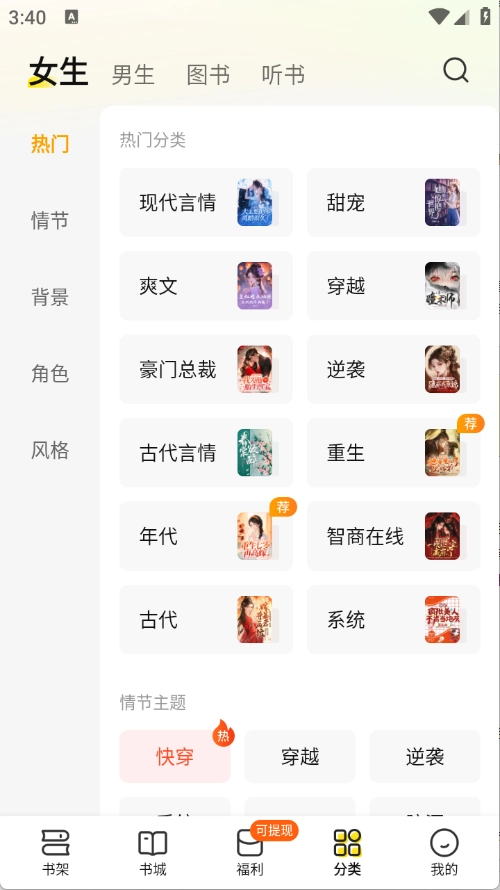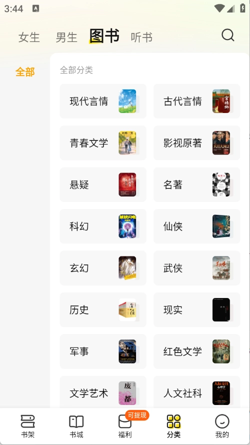 涵盖了各种各样的小说类型,如仙侠、科幻、穿越、言情等,自由的筛选。