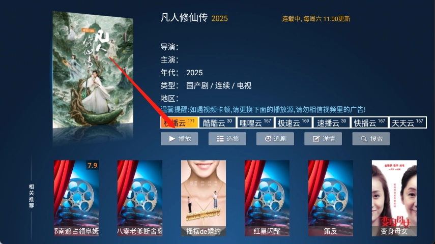 用户点开想看的影片进入详情页,点击“播放”。