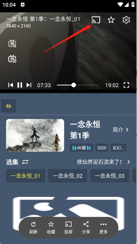 打开你想看的影视资源进入播放页面后,点击右上角的投屏按钮。