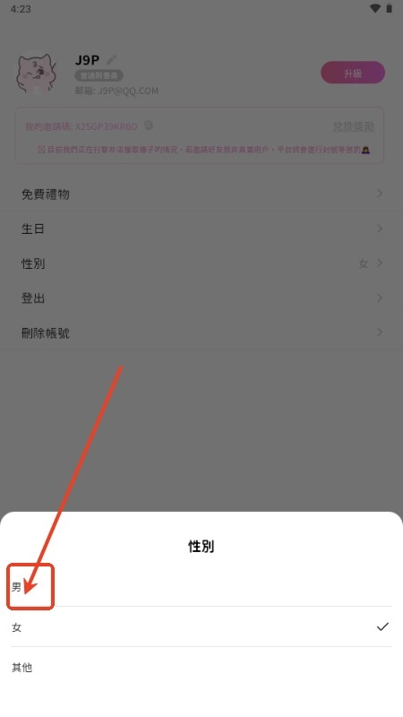 点击性别;