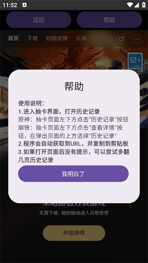 回到这里,HoYoGet会自动复制粘贴获取URL,这样就能查看该URL了。