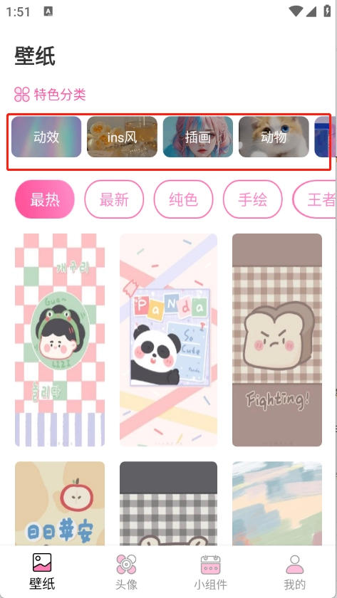 在头像和小组件板块,同样提供了丰富多样的风格样式供你选择,而且全部免费。我们会紧跟潮流趋势,持续更新优化内容,让你的手机界面更具个性。无论是找壁纸、头像还是组件,这里都能满足你,充分契合用户的个性化需求。