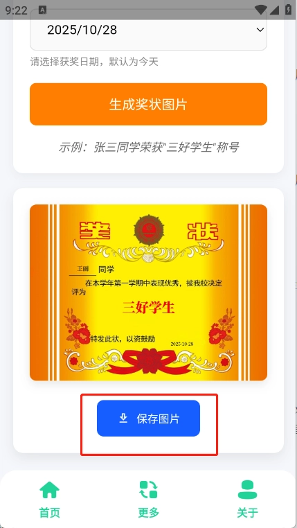 自定义奖状内容,可以将生成的图片进行保存。