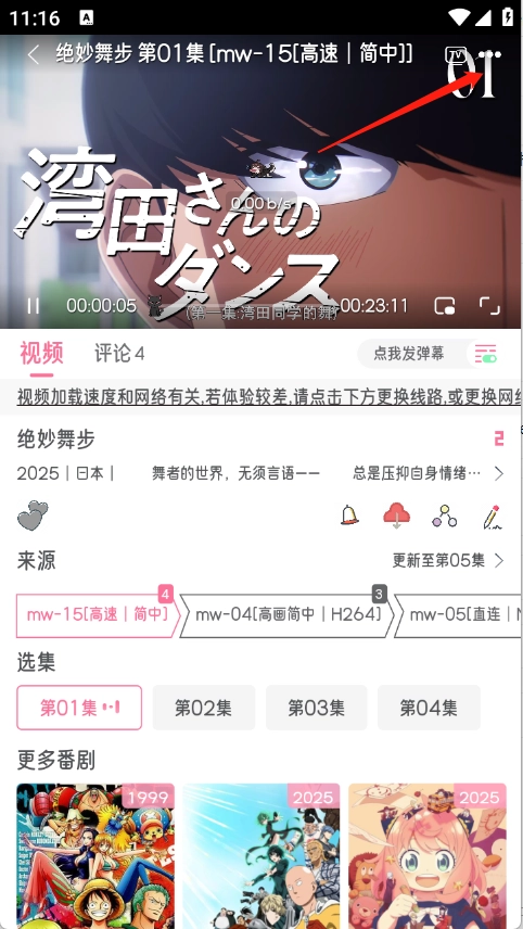 打开你想看的动漫,进入播放页面后,点击右上角的三个点图标。