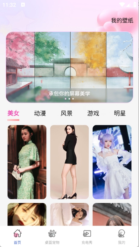 除了壁纸,还提供来电秀与桌面宠物功能,所有功能均免费开放使用,助力你全方位打造个性化手机桌面。壁纸资源持续更新,会依据当下热度及时上新,涵盖每日精选、节日限定、明星专区等垂直内容板块,时刻紧跟潮流热点。