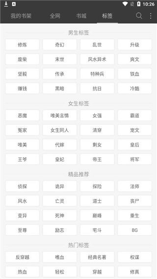 7、点击标签可以看到有非常多的小说分类,选择自己喜欢的类型就可以开始看啦,有兴趣的小伙伴们快来体验一下试试看哦!