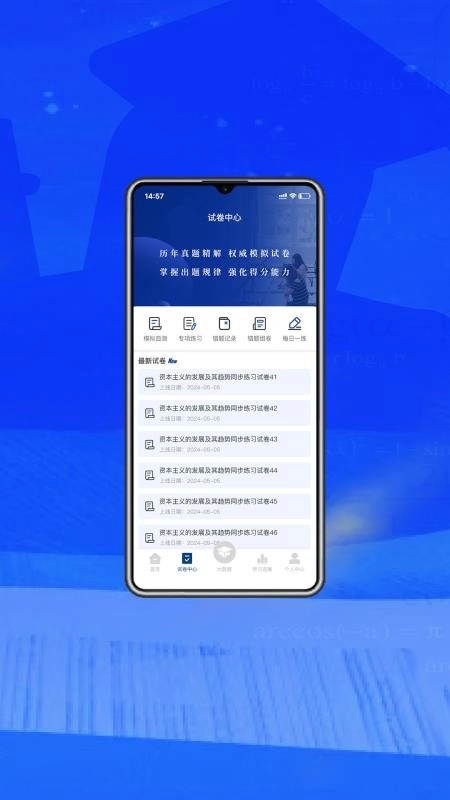 3、于试卷中心,能够自主挑选练习模式开启刷题,有助于高效提升巩固自身能力。