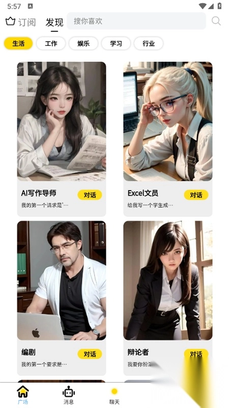 2. 在广场页面,能够依据自身需求挑选期望进行的对话。