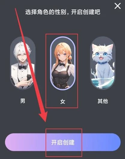 选择要创建角色的性别,点击【开启创建】