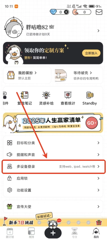 你可以自由选择平板、手表或是电脑来开启并同步你的专注计划。