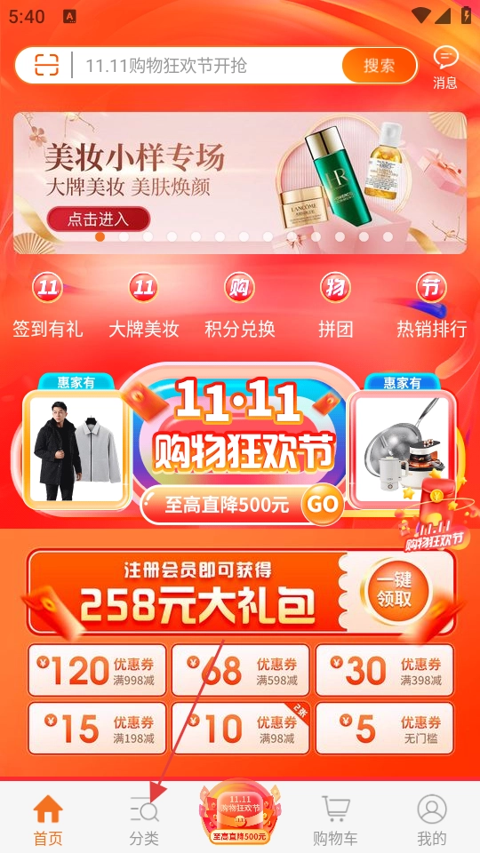 点击界面底部的【分类】选项,就能进入商品分类页面。