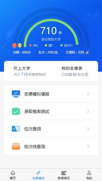 在志愿填报页面里,能够查看志愿表、使用智能模拟填报功能、进行位次及批次线查询等,这些功能可以辅助考生更精准地选择志愿。