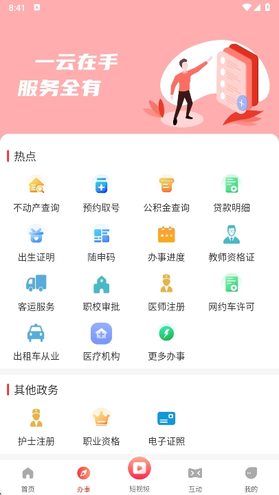 在办事服务版块,用户可以获取到基础的生活服务