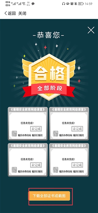 活动包含四个阶段的任务,需依次完成这四个阶段的全部任务,待所有任务完成后,点击下方的证书即可。