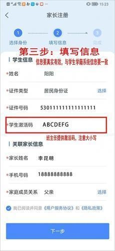 3、进入后填入相关信息,注意激活码是学校老师提供的。