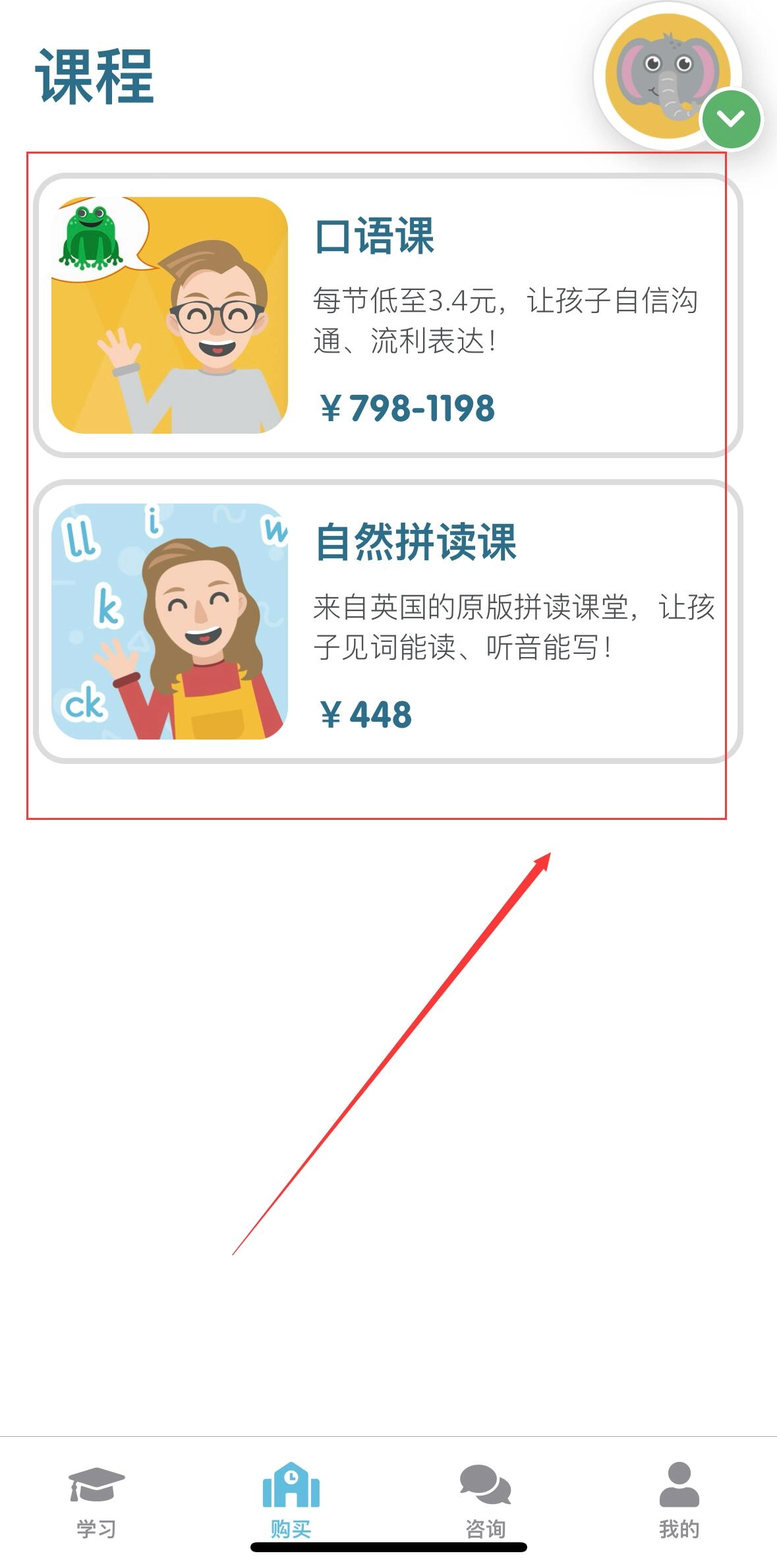 购买所需课程,实现英语能力提高。
