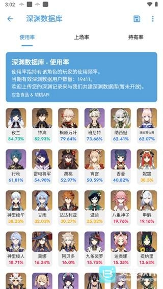选择深渊数据库,就能看到大数据对比下的人物出场率情况。