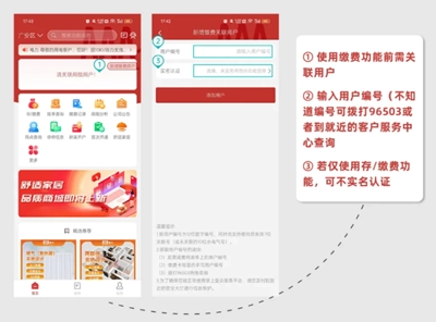 ②输入用户编号(若不清楚编号,可拨打96503咨询,也能前往就近的客户服务中心查询)