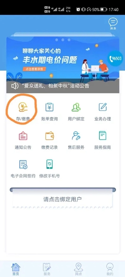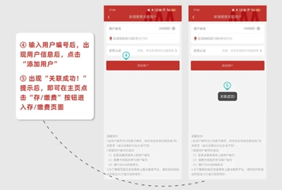 ⑤当屏幕上显示“关联成功!”的提示后,您就可以在主页找到并点击“存/缴费”按钮,从而进入存/缴费页面。