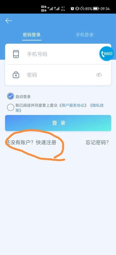 ②使用原掌上爱众注册电话号码