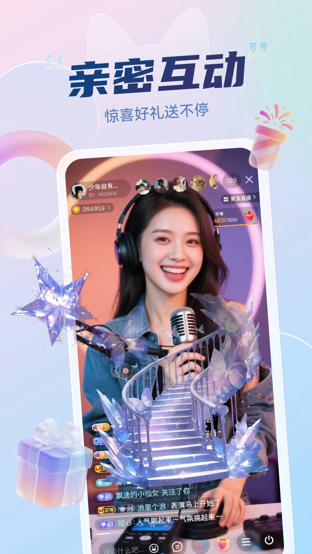 智能美颜与自由开播功能:智能美颜滤镜可一键启用磨皮、瘦脸、大眼等效果,助力用户轻松开播;成年用户完成实名认证后,即可自主开启个人直播,分享生活点滴或展示才艺特长。