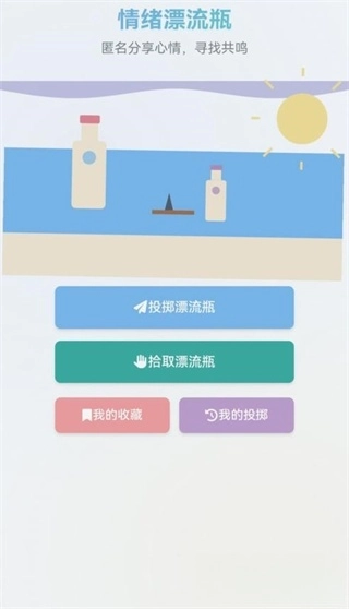 不妨试试情绪漂流瓶——把自己的心事悄悄装进瓶中,轻轻投向广阔的大海;也可以拾起海面漂来的他人的瓶子,静静感受那些不一样的故事。