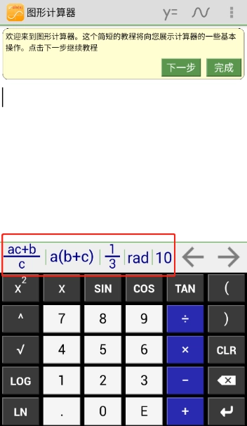 打开后,能看到一个类似计算器的屏幕,点击下方红色框里的计算式,就会显示出简化版本。