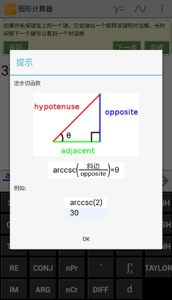 左右滑动键盘,能看到各种数学方程,长按会出现解析