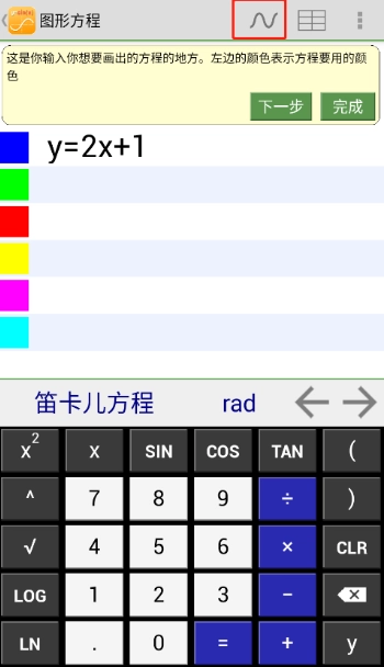 输入一个方程后,点击右上角的y=