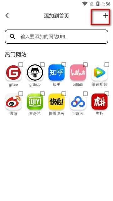 接着在添加到首页界面的右上角,找到“+”号按钮。