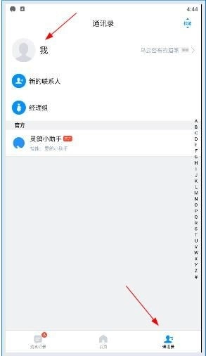首先我们需要在【通讯录】找到【我】,进入个人中心