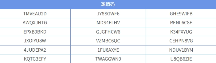 考虑到邀请码获取起来比较繁琐,小编特意为大家整理好了当前最新的邀请码,大家可以根据自己的需求自行取用。