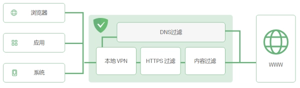 用户可自主选择设备上的过滤与阻止范围,分为基本模式和进阶模式。借助各类设置选项及应用程序管理工具,用户能够依据自身需求定制过滤功能,同时管控应用程序的流量消耗与网络访问权限。